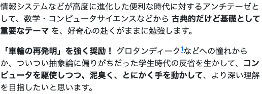 調べてみたら(下記のリンク参照)、日本語の場合は 行間を 1.8 くらい にした方が見やすいらしい。そこで src/style.css で行間の調整する。